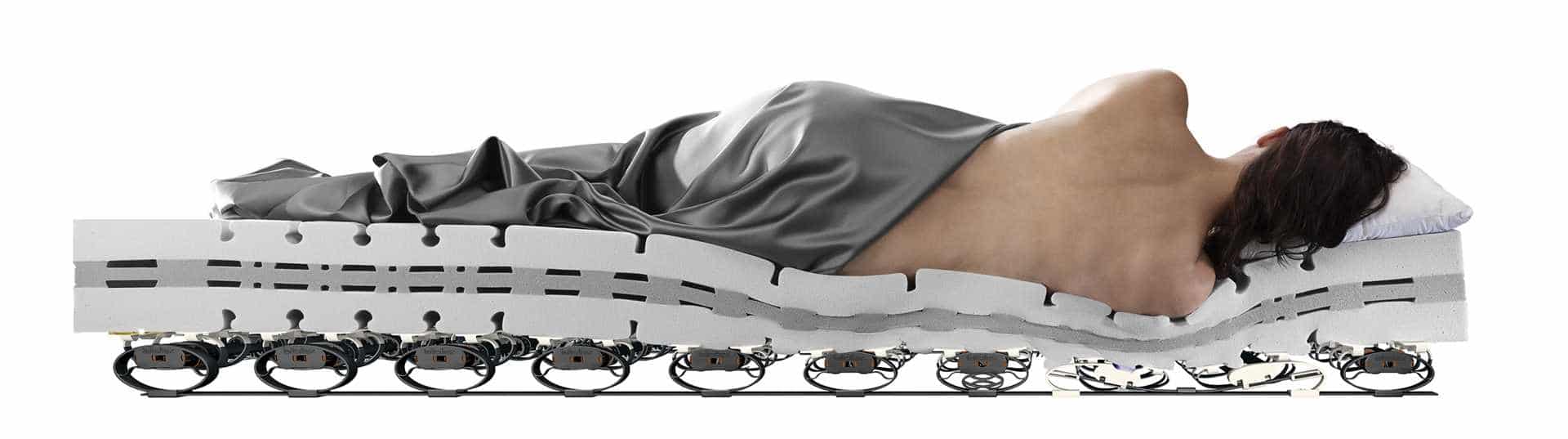 Mit den einzigartig sensiblen Flügeln bietet die Unterfederung mit der passenden Matratze eine sehr feindosierte Anpassung an den Körper.